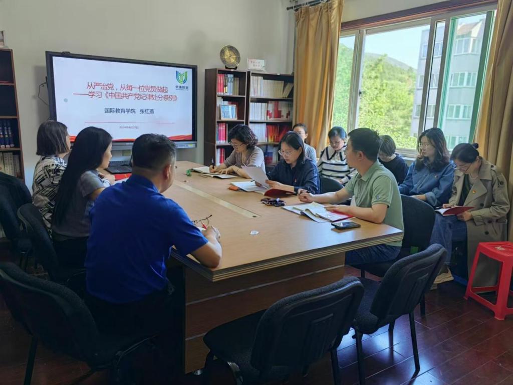 4月25日下午,2138cn太阳集团党委书记张红燕在学院党务会议室为教工党支部讲授党纪学习教育专题党课,学院教工党支部全体党员参加党课。