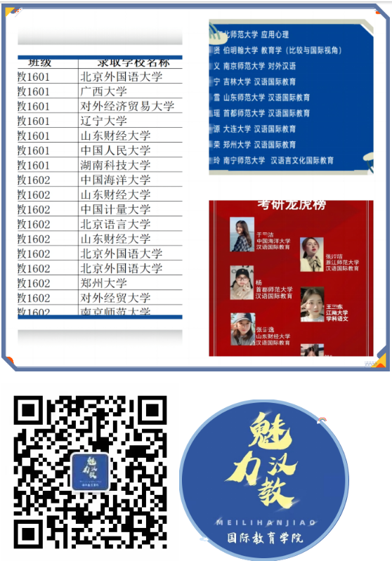敬请关注2138cn太阳集团“魅力汉教”公众号,我们精心策划了考研分享会、校友分享会、实习经验交流分享等系列活动,全方位展示汉语国际教育专业毕业生在深造与就业方面的风采与成就。期待您的参与!