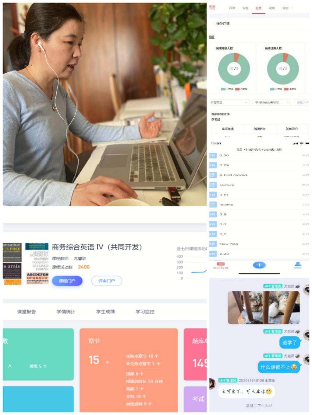 尤碧珍老师在线上课程中结合授课内容,增加国内外新闻阅读、中国日报社评、疫情讨论等内容,既增加了学生对疫情的认识,又增加了在线课程的新颖性和时尚感,大大提高了学生线上课程的学习热情。该教师还通过与学生分享个人生活,增进师生情感,家里的宠物猫成了课间休息的常客,为线上课堂带了不少欢乐。