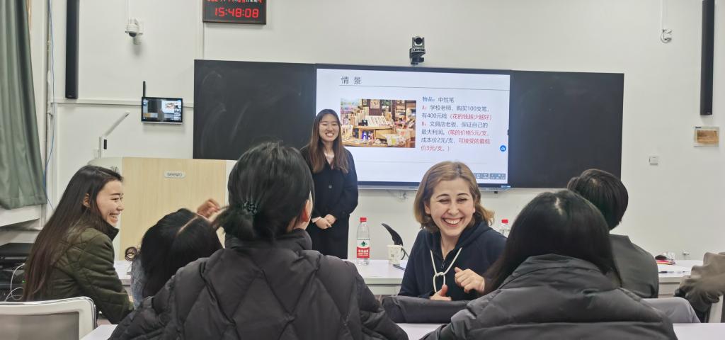 2021级汉语国际教育硕士组成三支团队参加了本届比赛。比赛课型包括中级汉语综合、中级汉语口语和中级商务汉语。参赛团队在指导教师的辅导下,充分发扬团队协作精神,精心设计课程教案,反复打磨授课环节。参赛过程中,各团队精神饱满、配合默契,教学思路清晰、教学设计巧妙、课件精美生动,运用智慧教学手段,展示了国际中文教师应有的教学风采。此外,本次大赛特别邀请我校国际学生参与课堂教学,与参赛团队真实互动,展现线下国际中文教学实景。