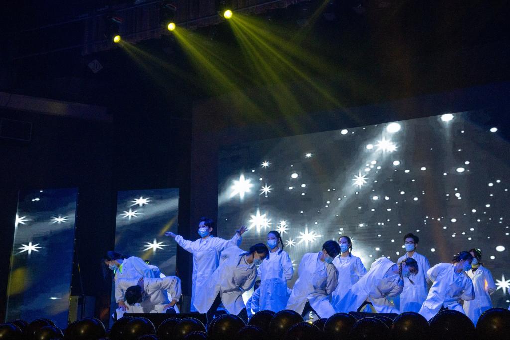 第三篇章主题为“凛冬散尽,共沐春风”,开篇由STDC舞社带来激情街舞表演《向光而行》,灯光璀璨,引人入胜;随后,由袁泉、魏国伦、王睿博、李宗尚、姚远5位同学带来的RAP表演《we we》,他们用说唱的形式深情呼唤着爱与和平,表达着对世界美好的憧憬与祝福;2020级研究生王奕澎、苗小雨、于慧、徐凯4位同学带来歌曲串烧《中国话》+《月半小夜曲》,俏皮灵动,优雅可人,用欢快的节奏唱过了每个人的心声;最后,一首充满温暖和爱心的大合唱《我们在一起》拉下晚会的完美帷幕,无邪的世界里,因为有你才更美丽,缤纷的世界里,欢笑中有我也有你,无论何时何地,我们都在一起,不负韶华,筑梦青春!