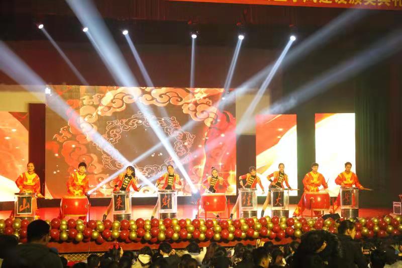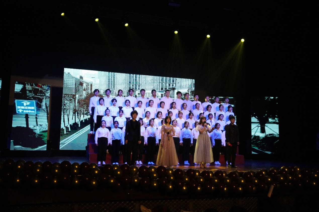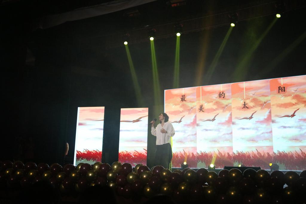 聚光灯下,鼓声乍起,开场歌舞《鼓舞盛世》以其律动的节奏、雄浑的鼓点,热烈的舞蹈,激发了青春的活力,点燃了在场师生的热情,正式拉开了晚会的序幕。晚会以“筑梦青春,共谱华章”为题,共分为三个篇章。