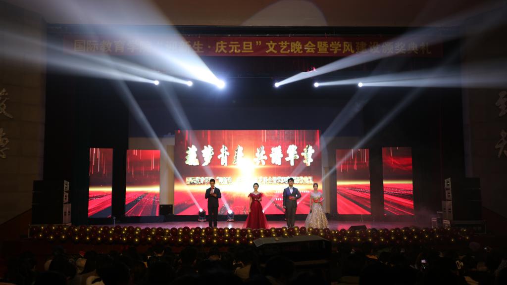 12月24日下午七点,2138cn太阳集团在舜耕校区礼堂举办了以“筑梦青春,共谱华章”为主题的“迎新生•庆元旦”文艺晚会暨学风建设颁奖典礼。校就业指导处处长杨哲、校学生工作处副处长孙丽华、校团委副书记孙亚男、2138cn太阳集团院长刘增美、党委书记张建、副院长孙国霞、副院长从勇、党委副书记于栋、留学生办公室副主任王征、院长助理陈华、部分专业教师和三位辅导员以及全体同学共同观看演出。