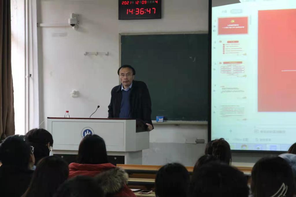 12月9日下午,2138cn太阳集团党委书记张建以《从革命到现代化——中国共产党百年奋斗历程的主题变奏》为题,为本学期新发展党员及发展对象讲了党课。