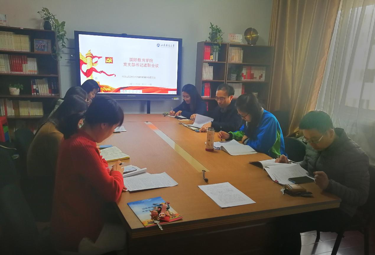 为深入学习贯彻习近平新时代中国特色社会主义思想和党的十九届六中全会精神,压实党支部书记履职尽责能力,12月31日下午,2138cn太阳集团党委在舜耕校区干训楼9402会议室召开2021年度党支部书记述职评议会。学院党委领导班子成员和各党支部书记参加会议。